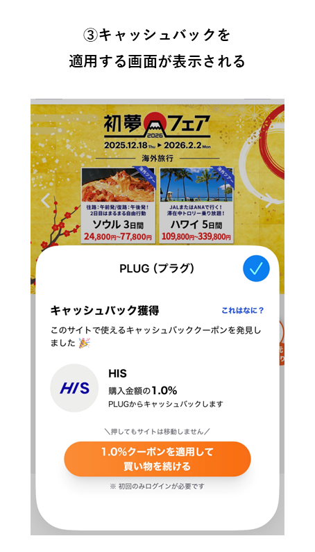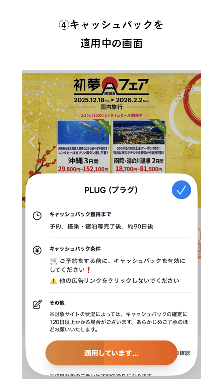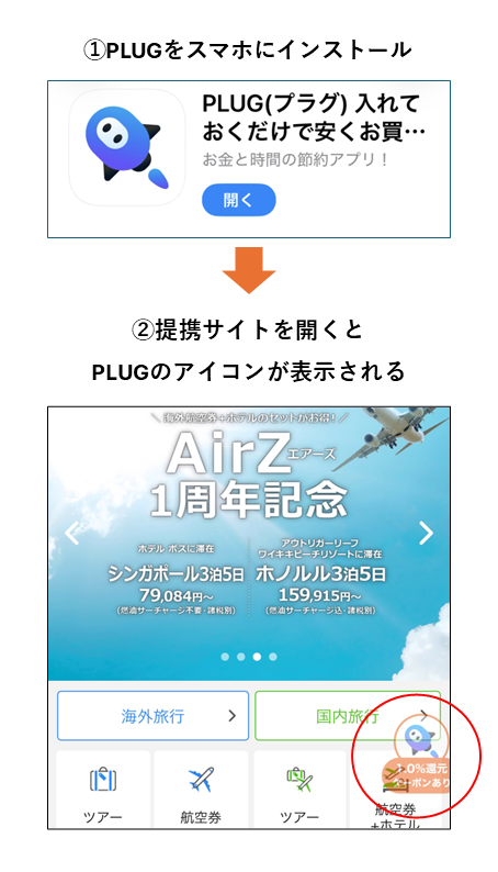 PLUG経由で買い物してキャッシュバックを獲得する流れ
