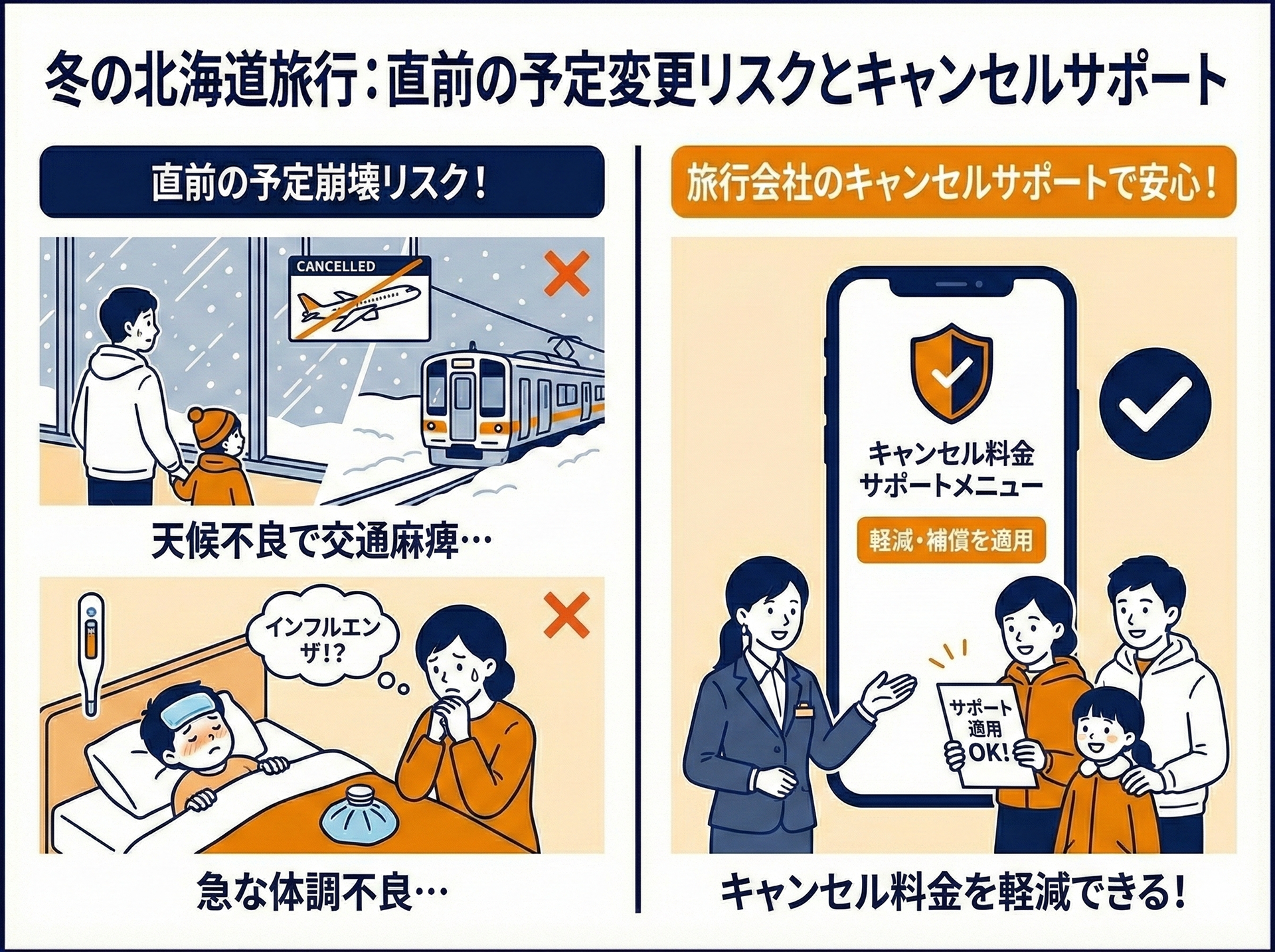 こうしたリスクに対して、多くの旅行会社では、キャンセル料金を軽減できるサポートメニューが用意されている。