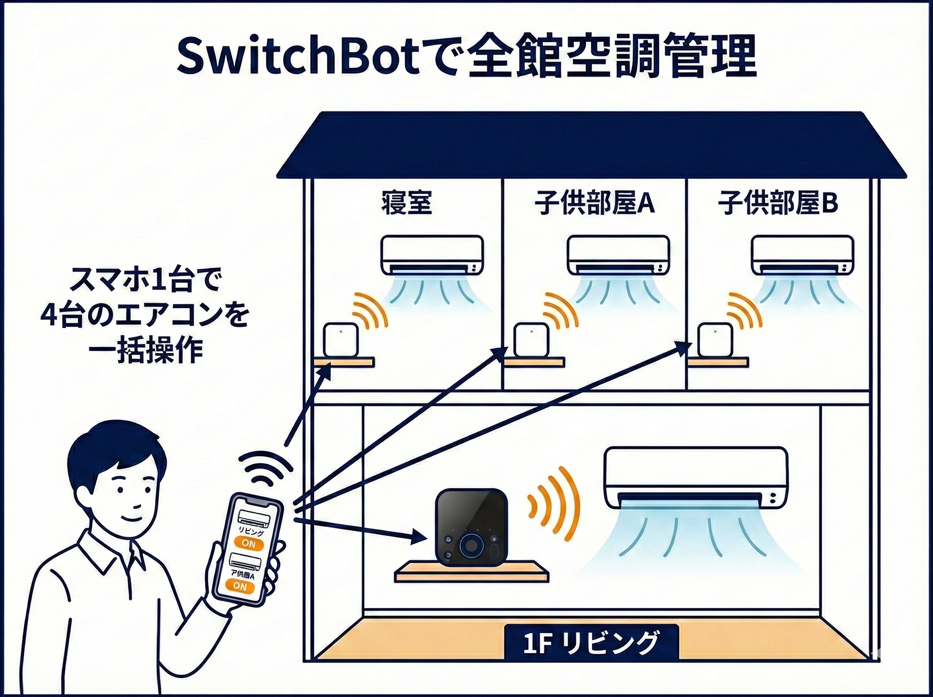 我が家では、スマートホーム製品の中でも利用者評価の高い「SwitchBot」を使って、次のような使い方をしている。