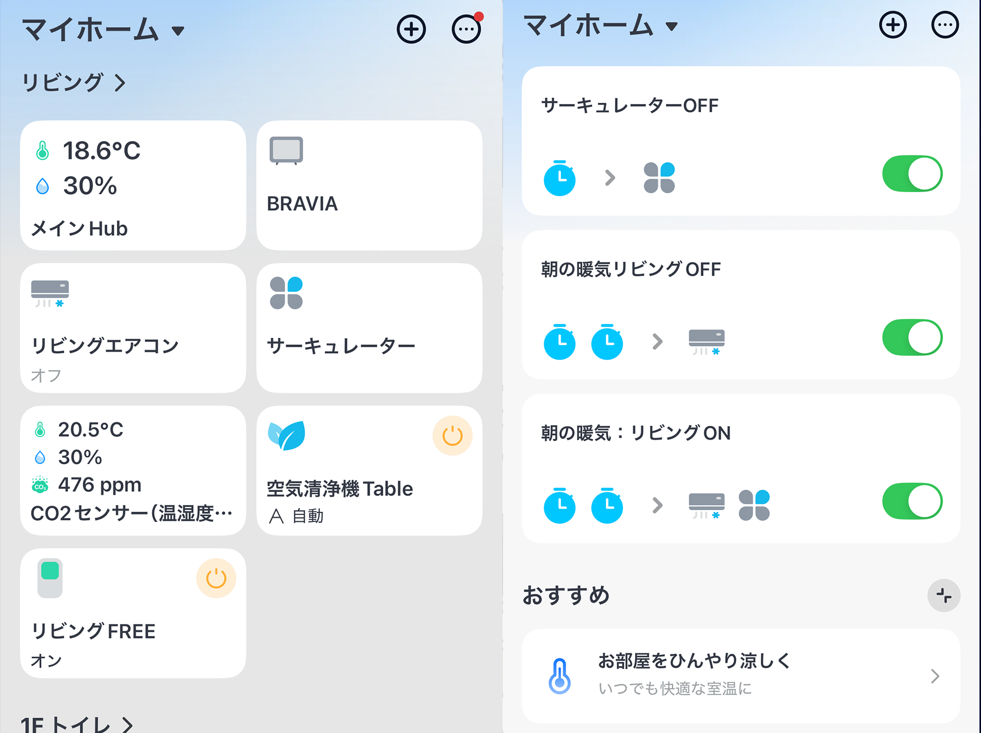 これらの操作を自動化したことで、快適な朝を迎える毎日は、本当に気持ちが良い。エアコンのリモコンを操作することは、ほとんどなくなった。